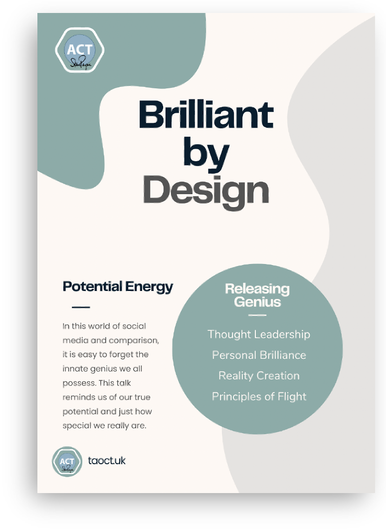 The talk is titled, Brilliant by Design, and is designed to help sixth form students and teachers have greater appreciation and understanding of our natural innate genius and potential, beyond passing exams.